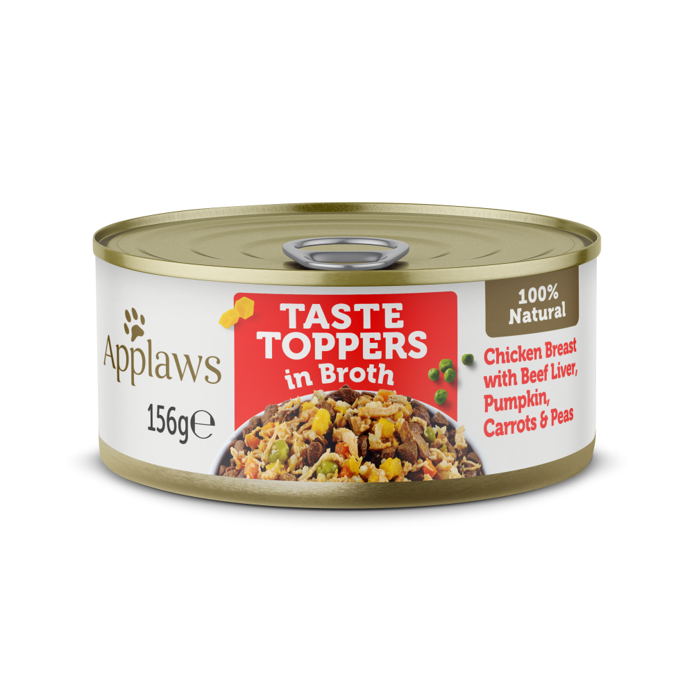 - وصفة لذيذة: مزيج من صدر الدجاج عالي الجودة وكبد البقر الطري مع القرع والجزر والبازلاء في مرق لذيذ سيحبه كلبك.