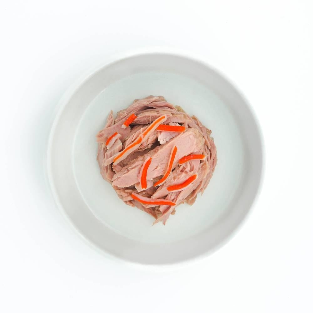 85 % تونة كاملة مع سوريمي طبيعي، طعام رطب بقوام جيلي لذيذ، غني بالبريبايوتك والزيت، يعزز الهضم والطاقة والفرو، مثالي للقطط اليومية والحساسة.