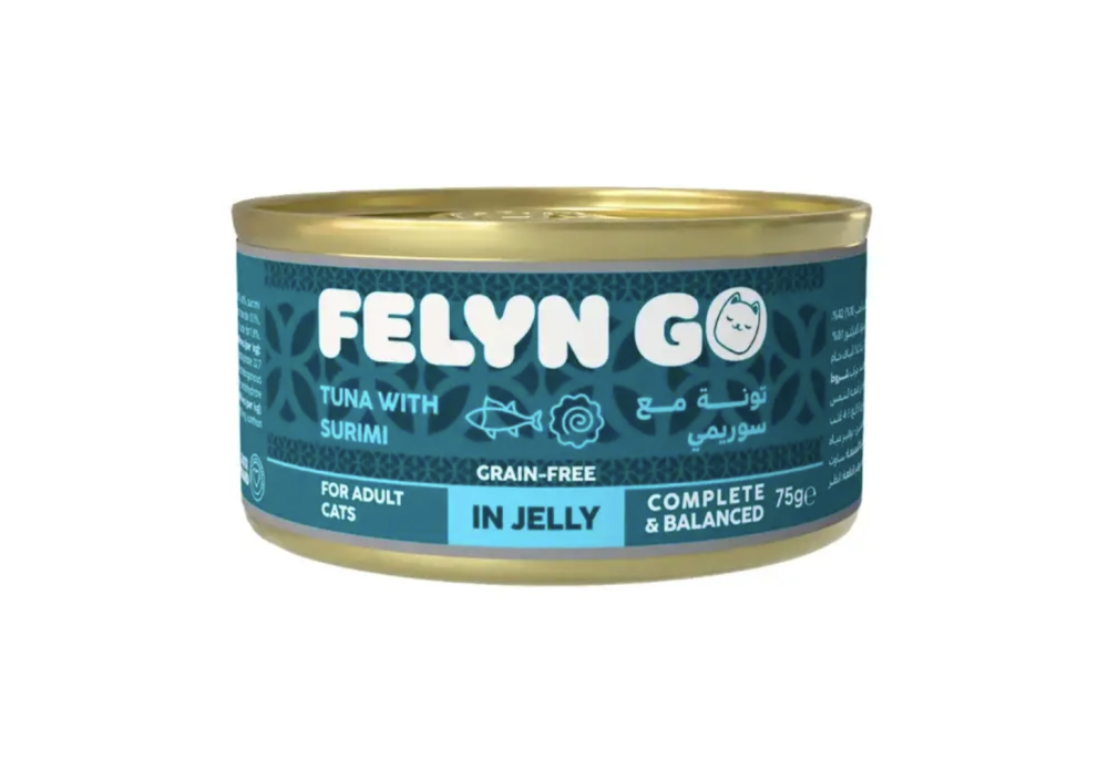 فيلاين قو معلبات التونا والسوريمي بالجيلي للقطط Feline go 75g