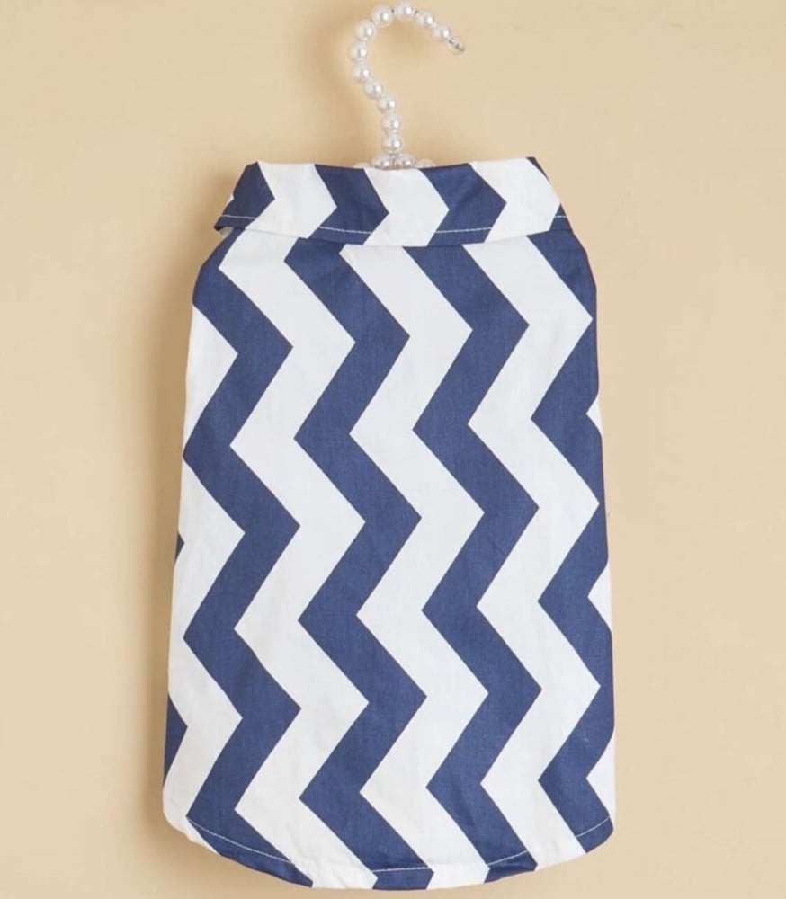 - قميص صيفي ابيض بخطوط كحليه متعرجه