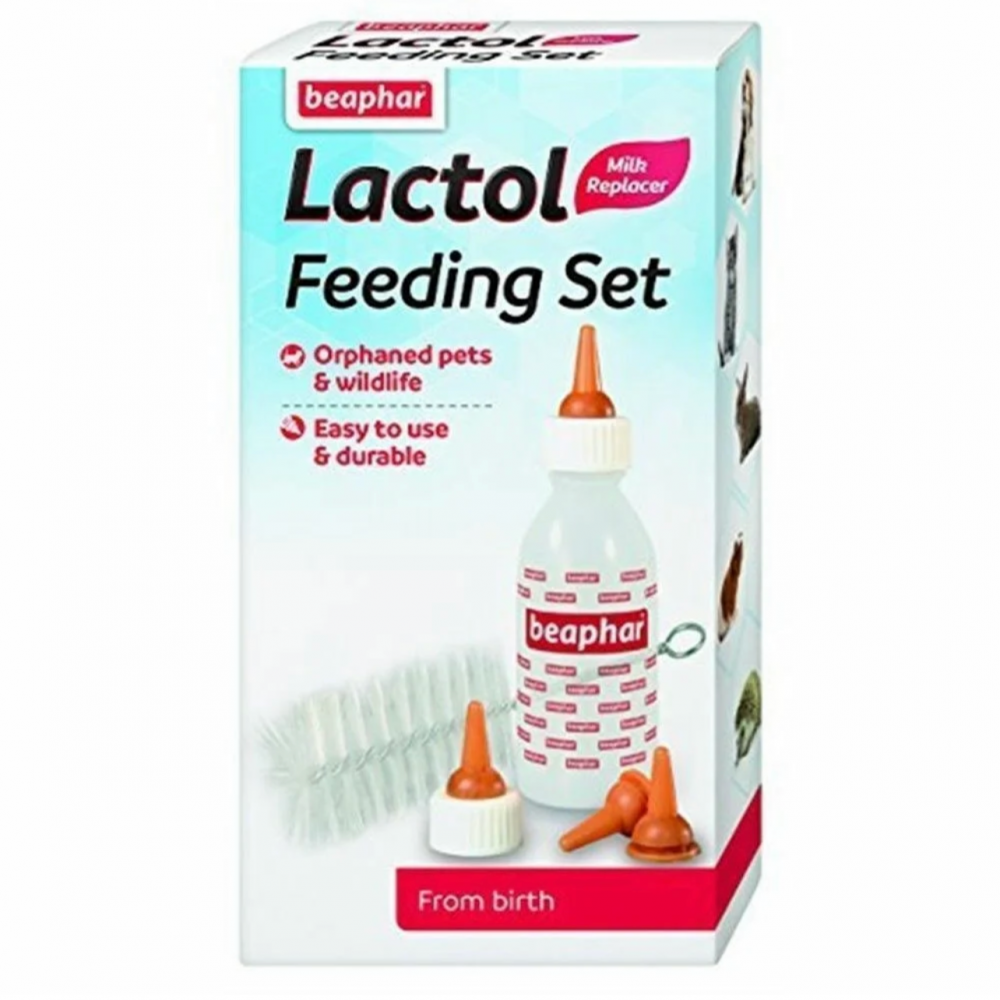 This set includes a bottle, four nipples and a cleaning brush. Designed for feeding baby animals (puppies, kittens, bunnies, dander, etc.). It can also be used to feed sick animals or in convalescence.